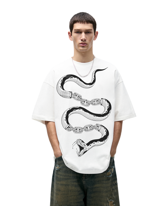 CHAINED SNAKE WHITE OVERSIZED TSHIRT